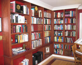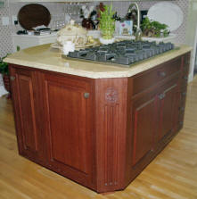 Custom built island with granite top constructed of exotic Makore wood from Africa.
