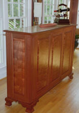 Custom built island with granite top constructed of exotic Makore wood from Africa.
